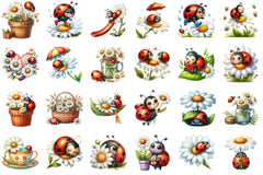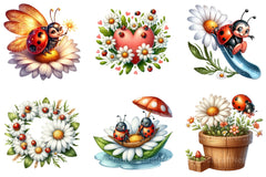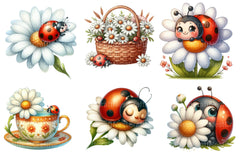Cute Daisy Spring Ladybug Clipart Bundle