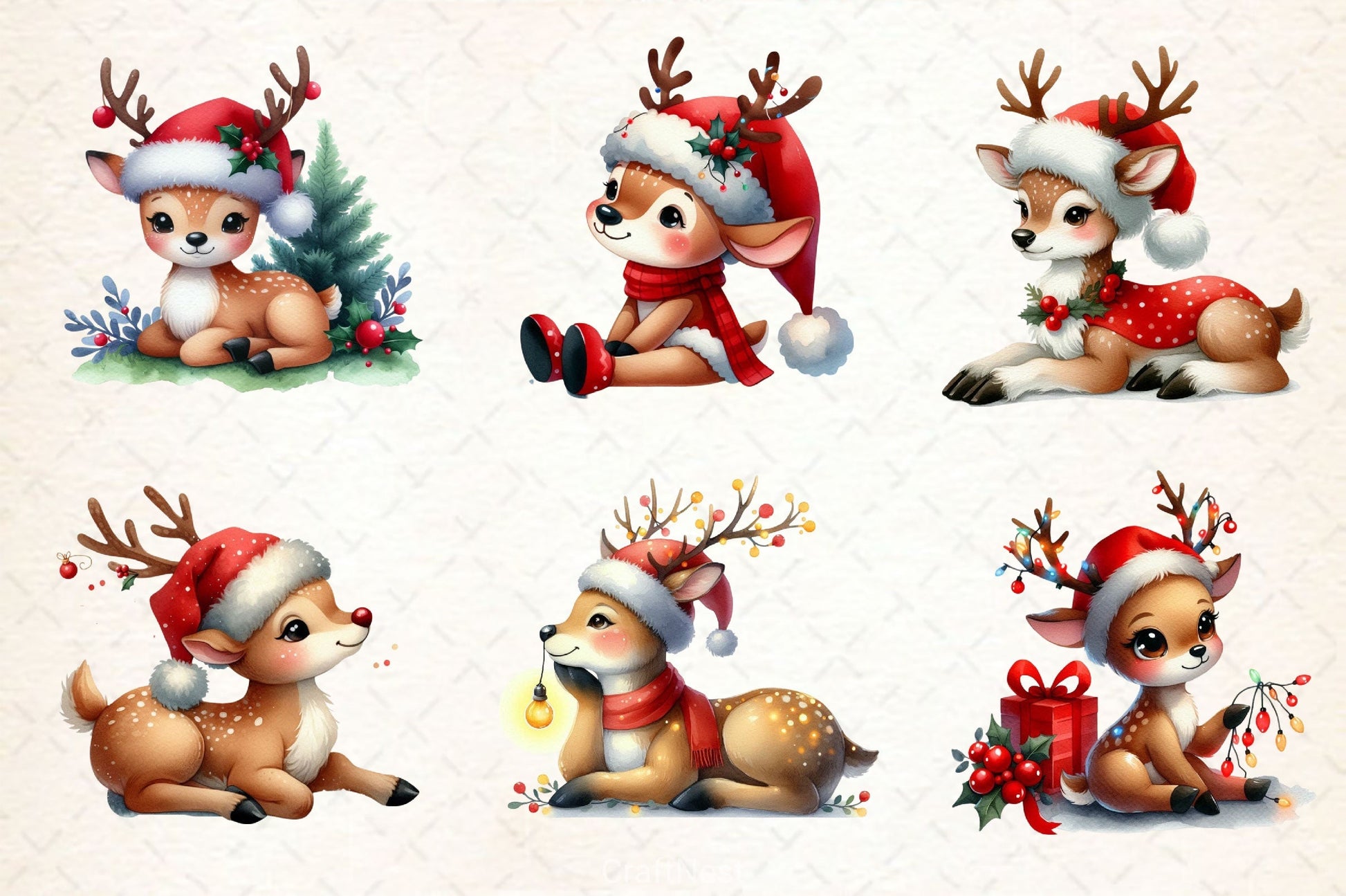 Leap with this Cute Deer Christmas Clipart Bundle, featuring adorable holiday woodland designs, perfect for forest Christmas crafts.