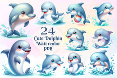 Swim with this Cute Dolphin Clipart Bundle, featuring adorable marine mammal designs, perfect for ocean animal crafts.