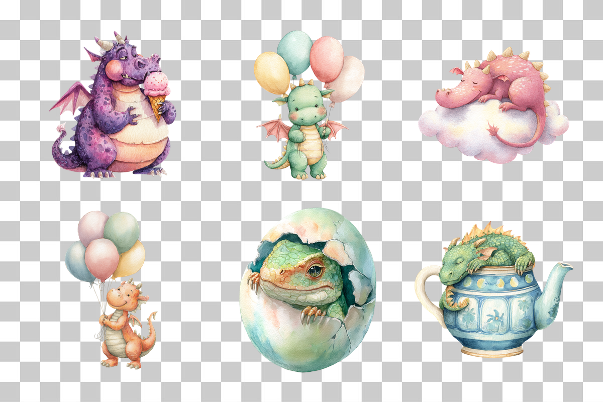 Transform your creations with this delightful dragon collection, ideal for magical party invitations and playful decor.