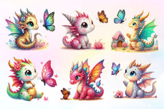 Flutter with this Cute Dragon With Butterfly Clipart Bundle, featuring adorable dragon nature designs, perfect for fantasy garden crafts.