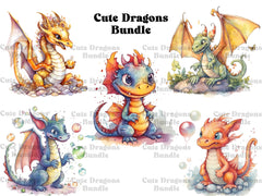 Unleash your imagination with our Cute Dragons clip art collection. These endearing digital illustrations depict friendly dragons in various playful poses, adding a dash of fantasy and adventure to your projects, from children's books to gaming designs.