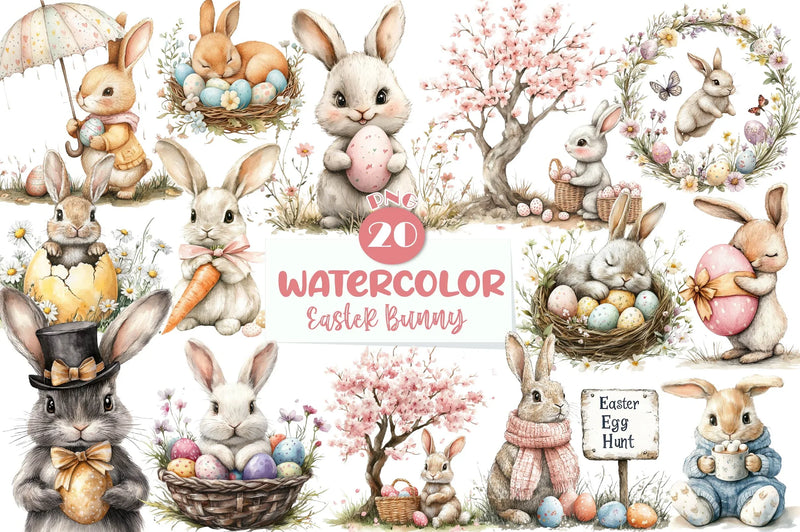 Hop into creativity with our Cute Easter Bunny Clipart Bundle, featuring charming bunny designs perfect for delightful spring crafts and festive decorations.