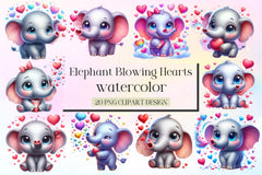 Love with this Cute Elephant Blowing Hearts Clipart Bundle, featuring romantic elephant designs, perfect for valentine animal crafts.