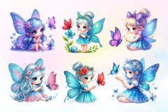 Flutter with this Cute Fairy With Butterfly Clipart Bundle, featuring magical creature nature designs, perfect for fantasy garden crafts.
