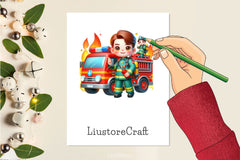 Rescue with this Cute Firefighters Fire Truck Clipart Bundle, featuring heroic firefighter designs, perfect for emergency service crafts.