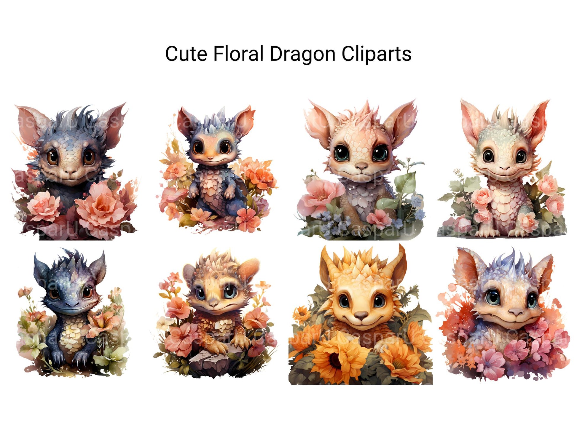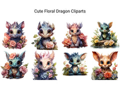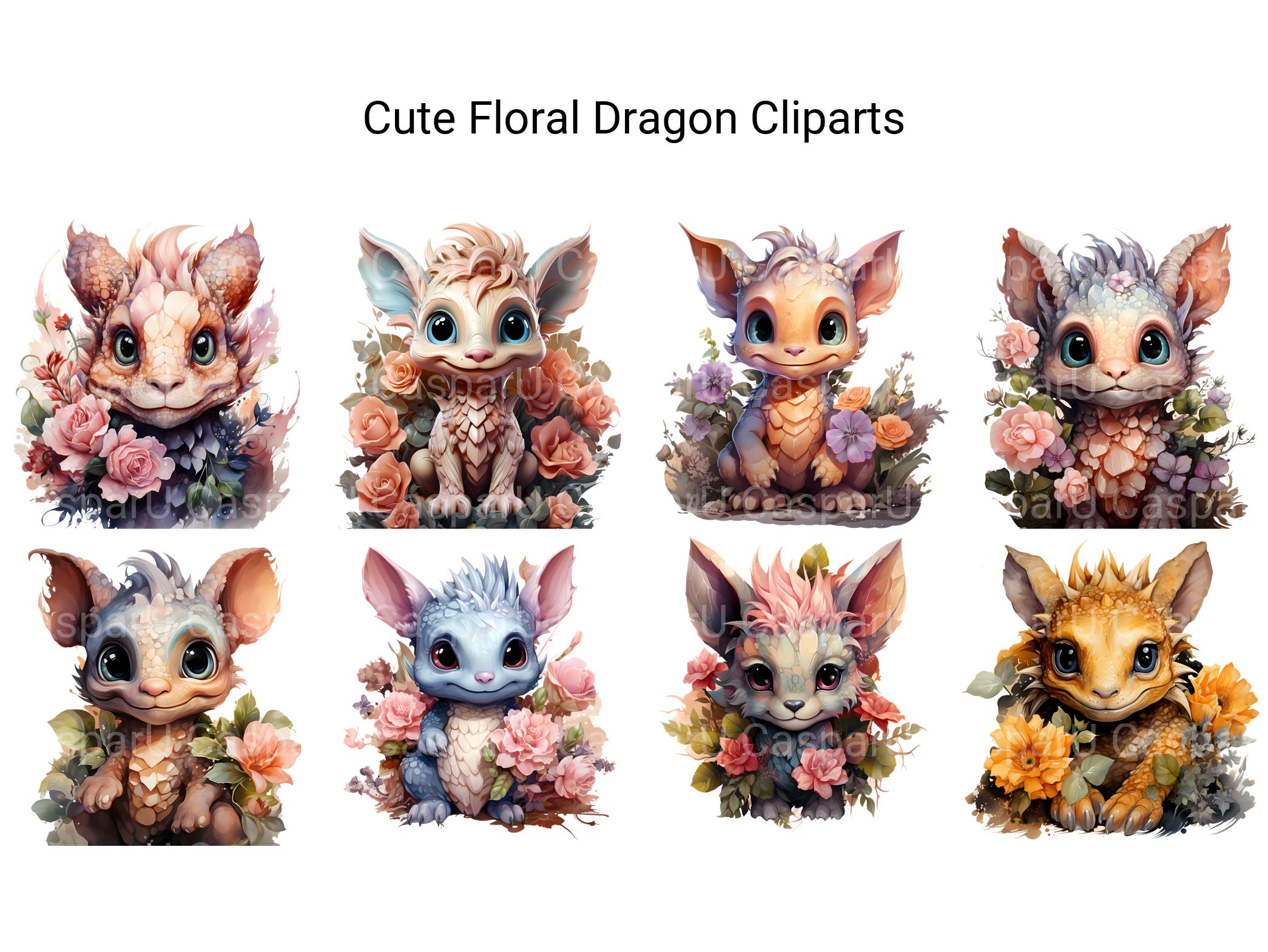 Bask in the enchanting beauty of our Cute Floral Dragon clip art. These whimsical digital illustrations depict dragons adorned with delicate flowers and lush foliage, perfect for adding a touch of botanical elegance and magical allure to your designs, whether for fantasy artwork, garden-themed decorations, or whimsical projects, capturing the timeless charm of floral dragons in delightful detail.