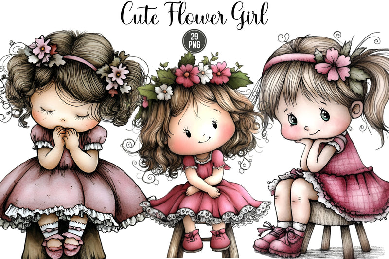 Enhance your creative projects with our Cute Flower Girl Clipart Bundle, featuring charming floral-themed girl illustrations perfect for invitations, scrapbooking, and nursery decor. This delightful collection offers a variety of whimsical designs, ideal for adding a touch of elegance and playfulness to your crafts. Unleash your imagination with these high-quality, versatile clipart images, perfect for both digital and print projects. Transform your creations with the enchanting beauty of our flower girl illustrations today!