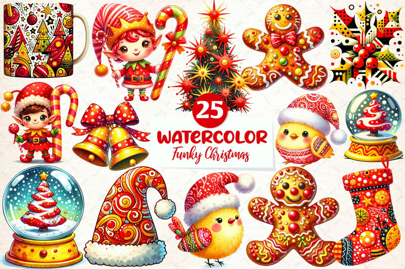 Groove with this Cute Funky Christmas Clipart Bundle, featuring quirky holiday designs, perfect for kawaii Christmas crafts.