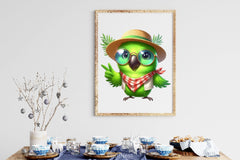 Squawk with this Cute Funny Green Parrot Clipart Bundle, featuring humorous tropical bird designs, perfect for comedy pet crafts.