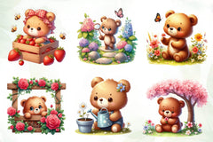 Garden with this Cute Garden Bear Clipart Bundle, featuring gardening bear designs, ideal for nature animal crafts.