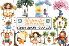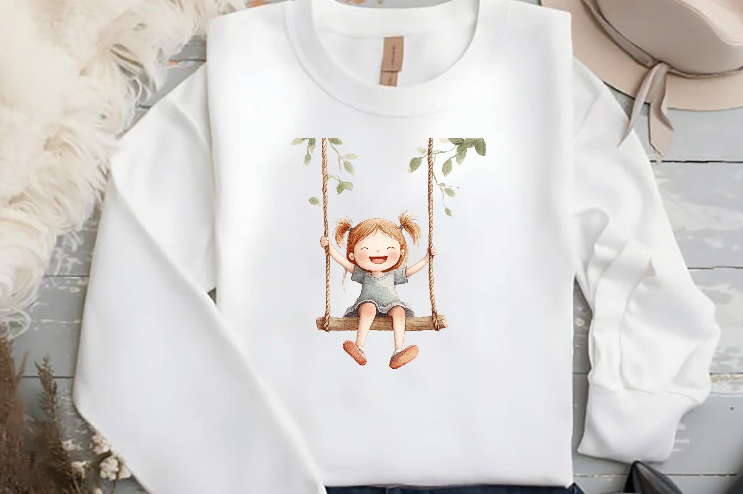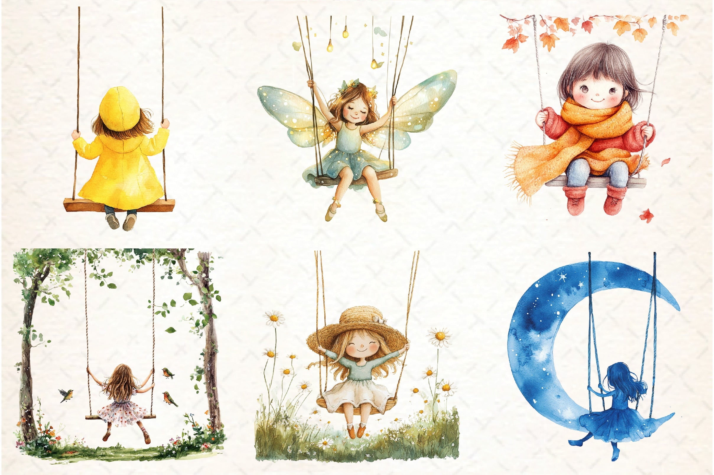 Delight in the charm of our Cute Girl on Swing Clipart Bundle, showcasing whimsical designs perfect for playful nursery decor and creative projects. Elevate your crafts with these enchanting illustrations, ideal for scrapbooking, invitations, and more. Discover endless possibilities with this adorable collection, designed to inspire and captivate.