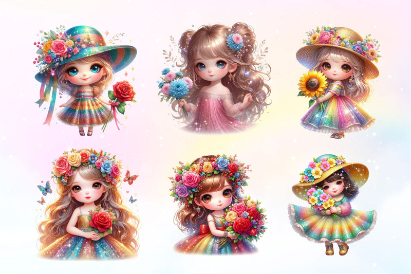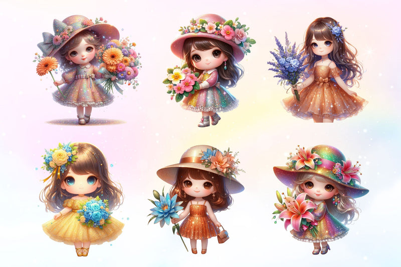 Bloom with this Cute Girl With Flower Clipart Bundle, featuring adorable child garden designs, perfect for people flower crafts.