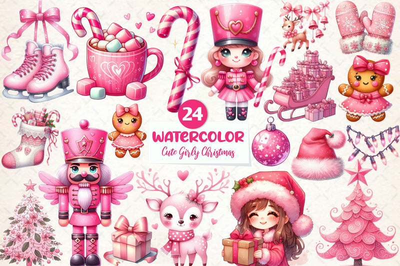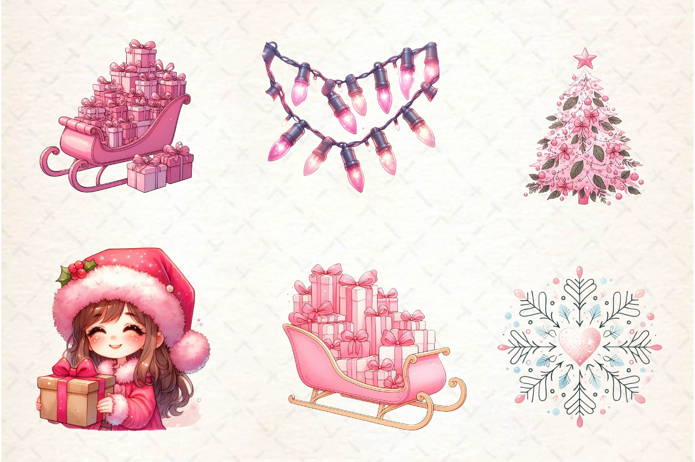 Sparkle with this Cute Girly Christmas Clipart Bundle, featuring feminine holiday designs, ideal for kawaii Christmas crafts.
