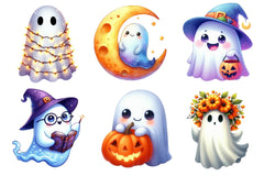 Boo with this Cute Halloween Ghost Clipart Bundle, featuring adorable ghost designs, perfect for sweet spooky crafts.