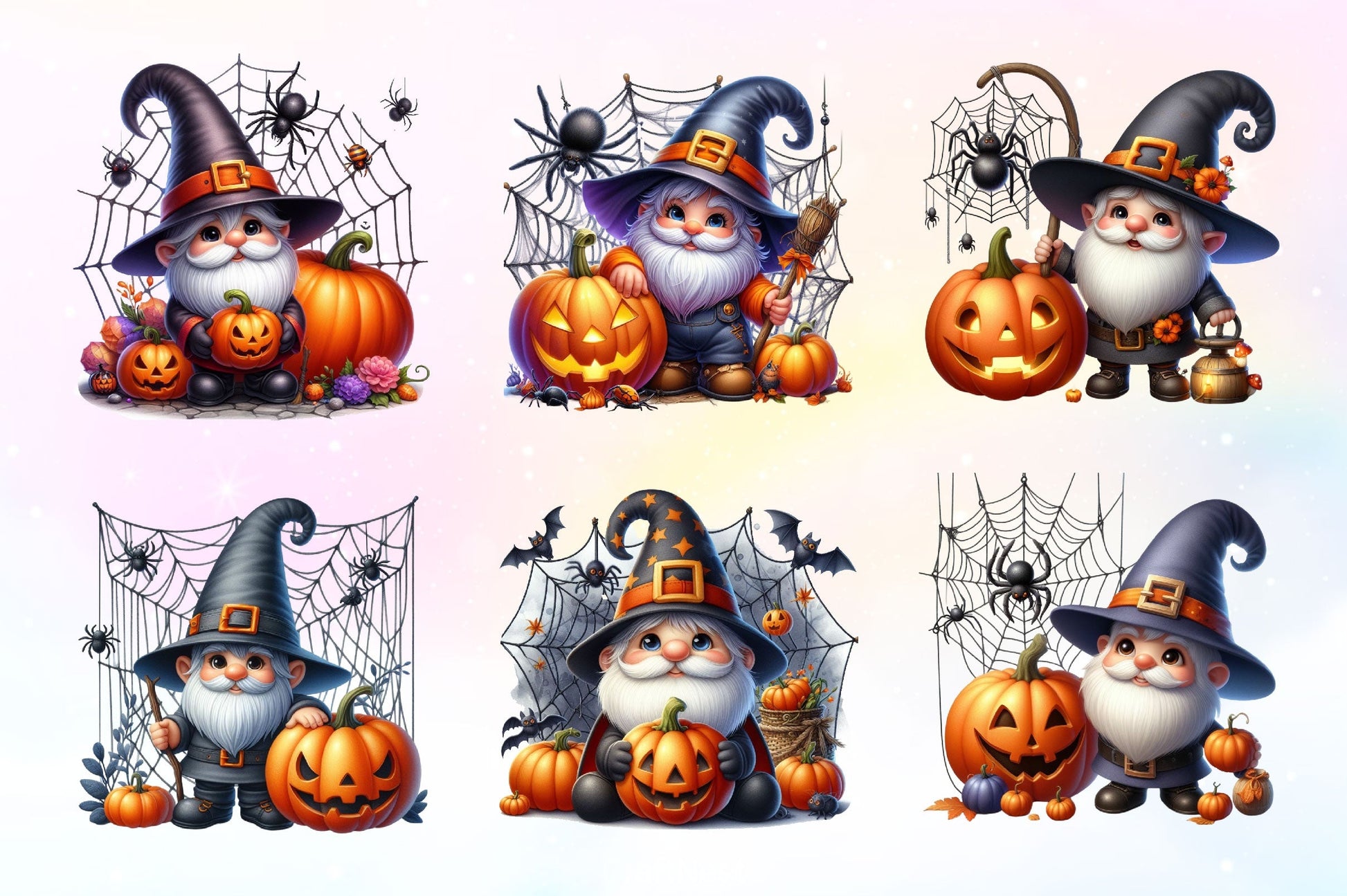 Spook with this Cute Halloween Gnome Clipart Bundle, featuring adorable spooky garden creature designs, perfect for sweet Halloween crafts.