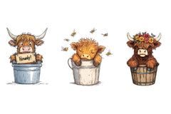 Cute Highland Cow In A Bucket Clipart Bundle