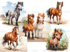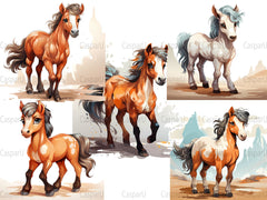 Gallop into a world of elegance and grace with our Cute Horses clip art. These adorable digital illustrations feature majestic horses, their mane flowing in the breeze as they prance through meadows and fields, perfect for adding a touch of equine charm and equestrian beauty to your designs, whether for children's artwork, equestrian-themed decorations, or horse-inspired creations, celebrating the timeless bond between humans and horses in charming detail.