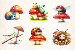 Cute Insects Mushroom Clipart Bundle 2