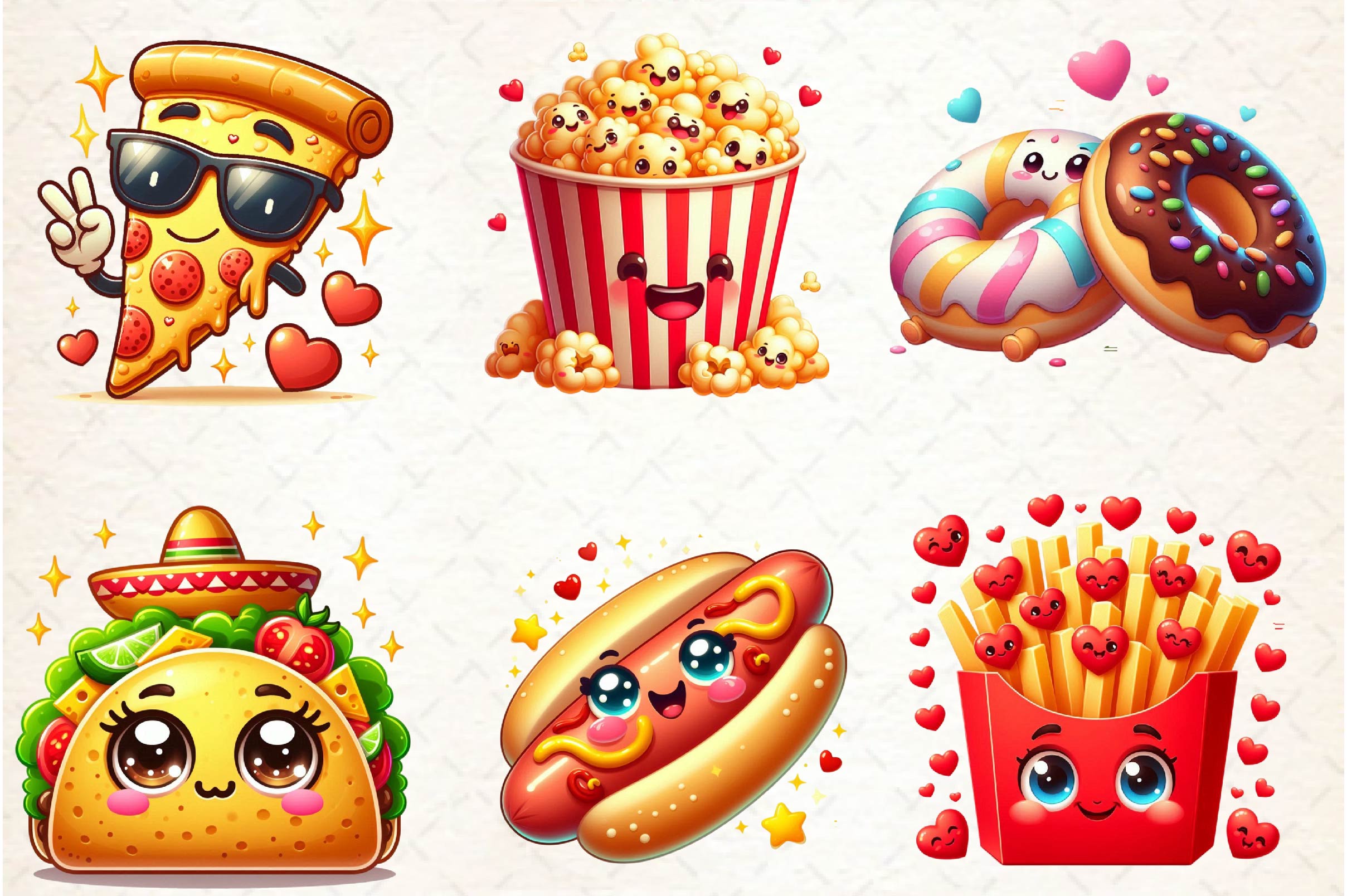 Indulge with this Cute Junk Food Clipart Bundle, featuring adorable snack designs, perfect for kawaii food crafts.