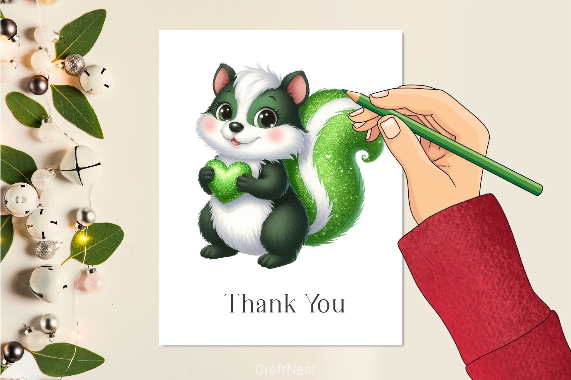 Adorable with this Cute Kawaii Skunk Clipart Bundle, featuring sweet skunk designs, perfect for kawaii animal crafts.