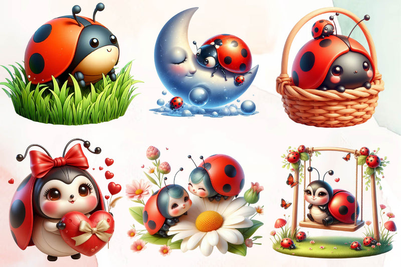 Crawl with this Cute Ladybug Clipart Bundle, featuring adorable insect designs, ideal for kawaii nature crafts.