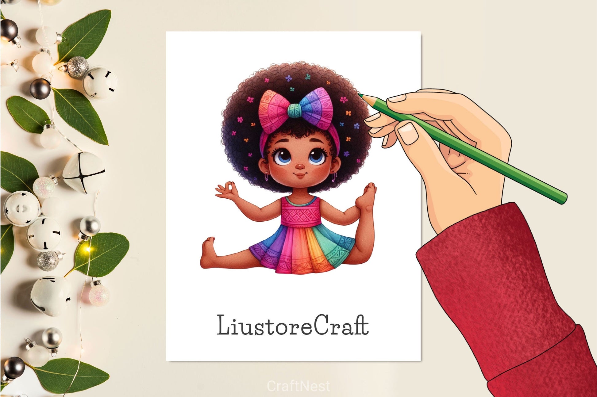 Cute Little Girl Afro Yoga Pose Clipart Bundle