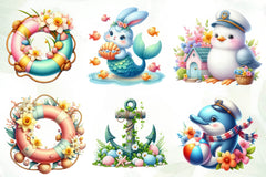 Sail with this Cute Nautical Spring Clipart Bundle, featuring maritime spring designs, perfect for ocean seasonal crafts.