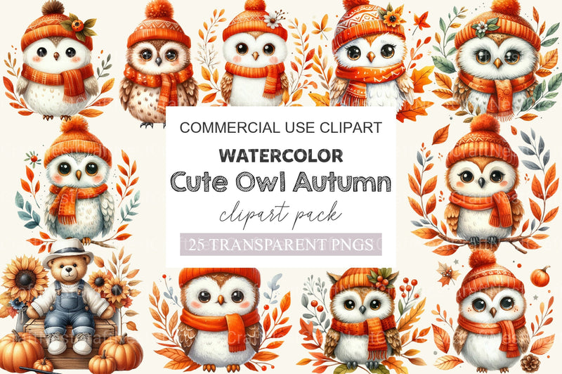 Cute Owl Autumn Clipart Bundle