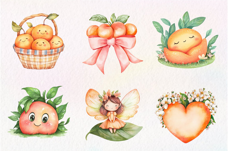 Pick with this Cute Peaches Garden Fruit Clipart Bundle, featuring sweet fruit designs, ideal for garden fruit crafts.