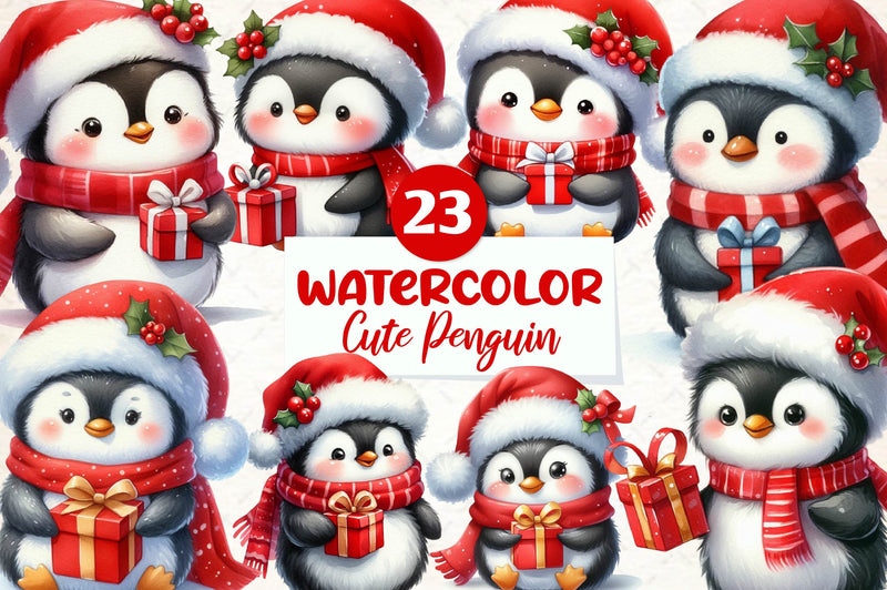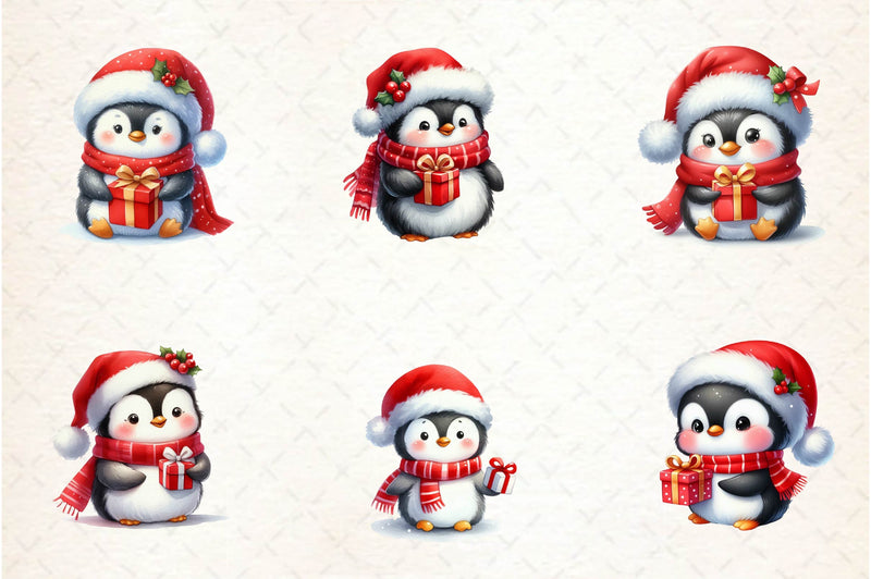 Waddle with this Cute Penguin Christmas Clipart Bundle, featuring adorable penguin designs, ideal for kawaii Christmas crafts.