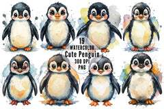 Adorable penguin characters perfect for winter and arctic themed projects.