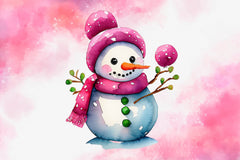 Cute Pink Color Snowman Christmas Clipart Bundle