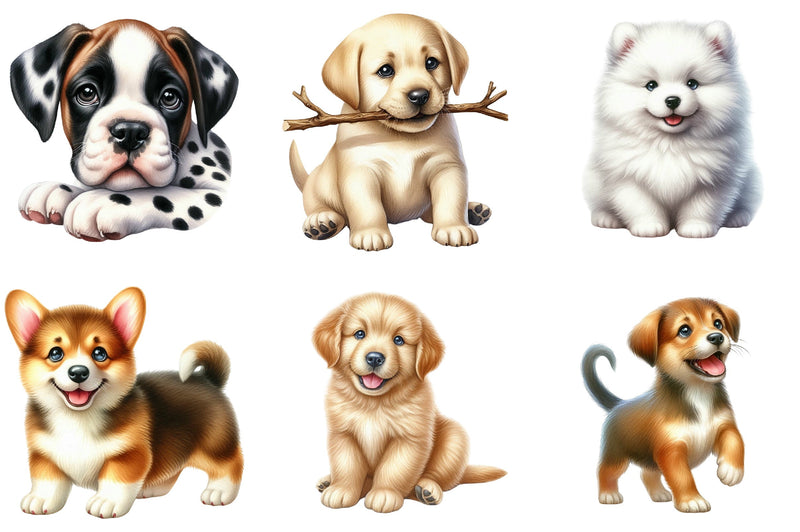 Unleash creativity with our Cute Puppies Clipart Bundle, a delightful dog clipart collection perfect for pet-themed projects. Featuring charming puppy designs, this bundle is ideal for scrapbooking, invitations, and nursery decor. Elevate your crafts with these adorable canine illustrations, perfect for dog lovers and creative enthusiasts alike. Transform your projects with this versatile and high-quality puppy clipart set, designed to inspire and captivate.