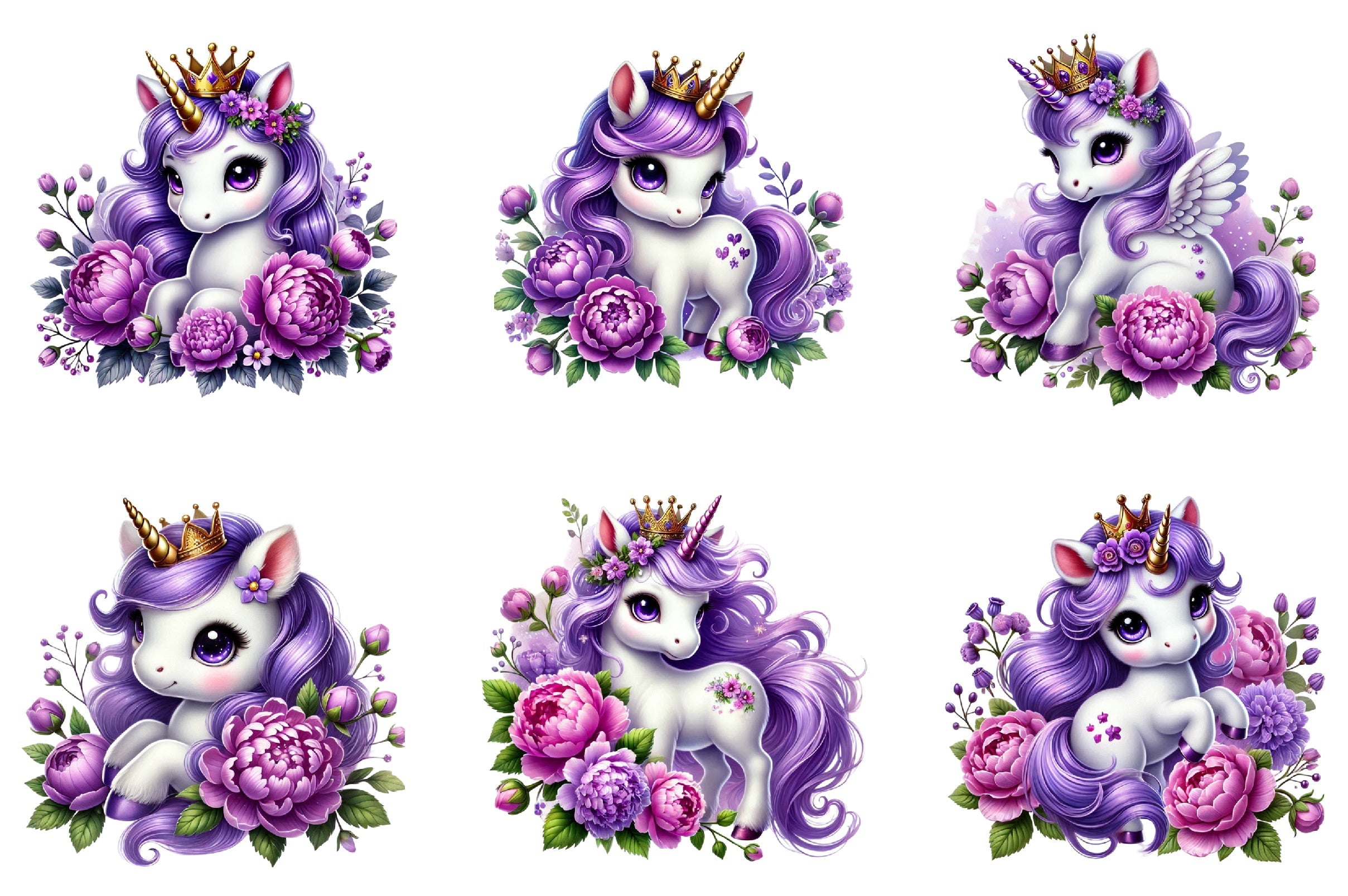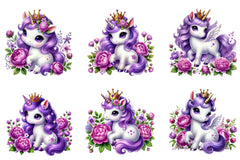 Unleash creativity with our Cute Purple Unicorn Clipart Bundle, perfect for whimsical projects and magical nursery decor.
