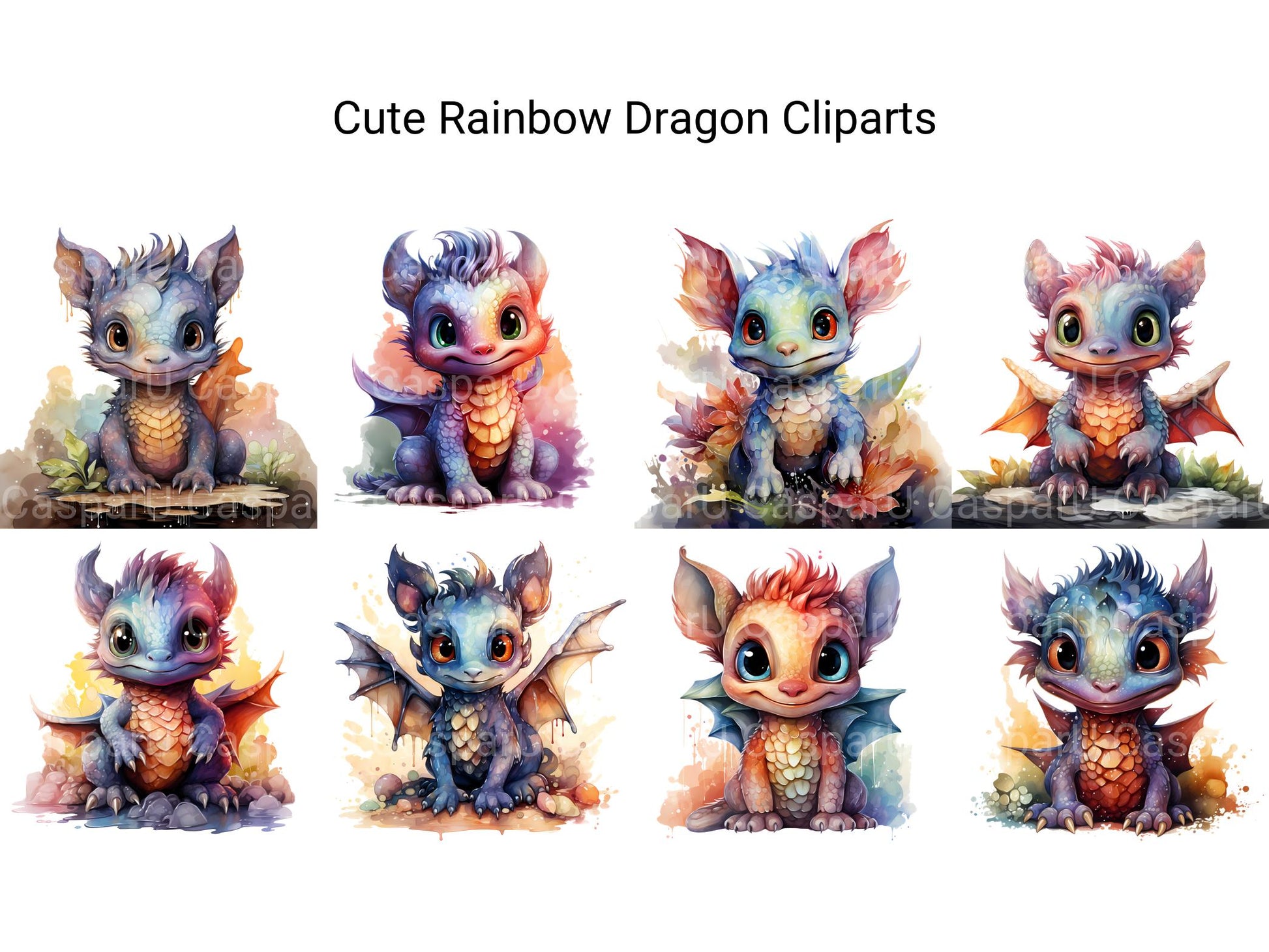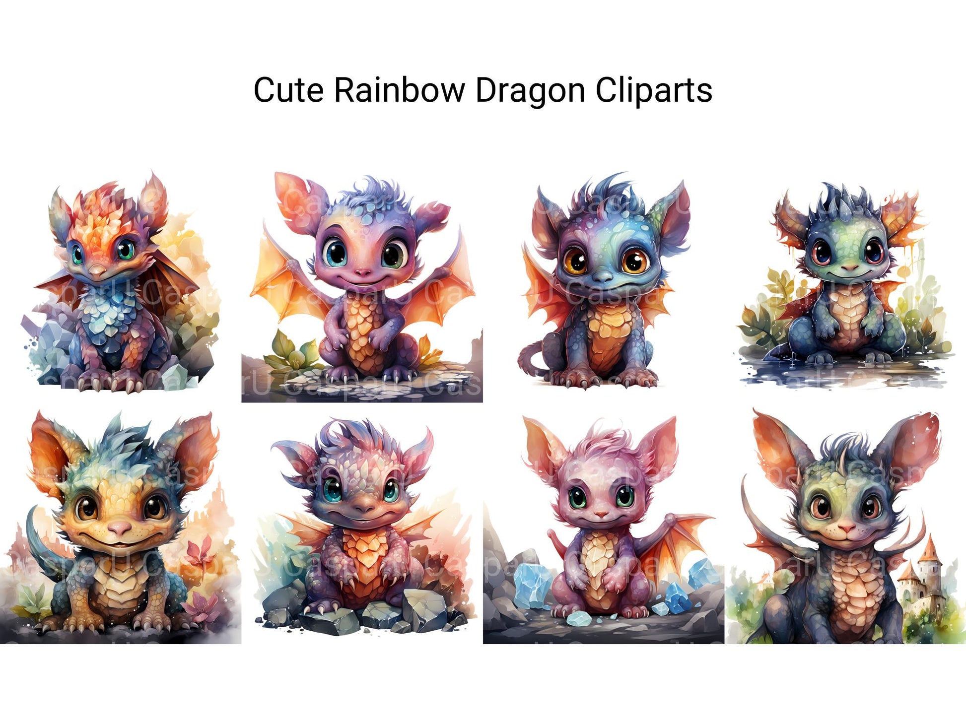 Ride the rainbow with our Cute Rainbow Dragon clip art. These vibrant digital illustrations feature rainbow dragons, with colorful scales and radiant hues, perfect for adding a touch of whimsical wonder and chromatic charm to your designs, whether for fantasy artwork, rainbow-themed creations, or magical adventures, capturing the dazzling beauty of rainbow dragons in delightful detail.