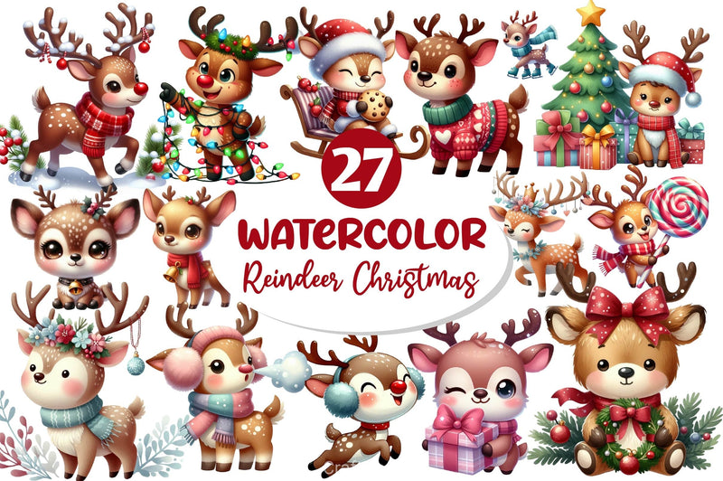 Fly with this Cute Reindeer Christmas Clipart Bundle, featuring adorable holiday reindeer designs, perfect for magical Christmas crafts.