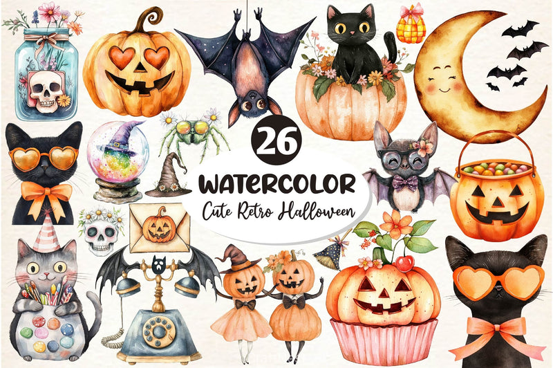 Cute Retro Halloween Clipart Bundle 2