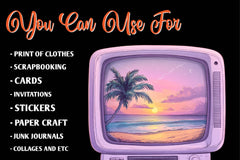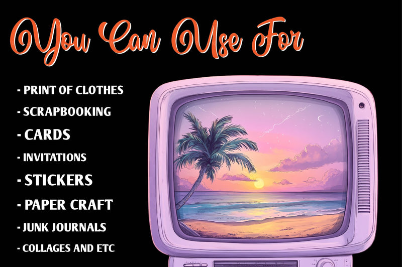 Groove with this Cute Retro Summer Clipart Bundle, featuring vintage summer designs, perfect for retro seasonal crafts.