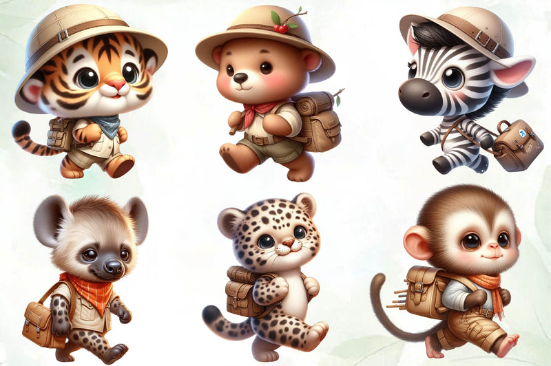 Explore with this Cute Safari Animals Jungle Animals Clipart Bundle, featuring wild creature designs, perfect for kawaii animal crafts.
