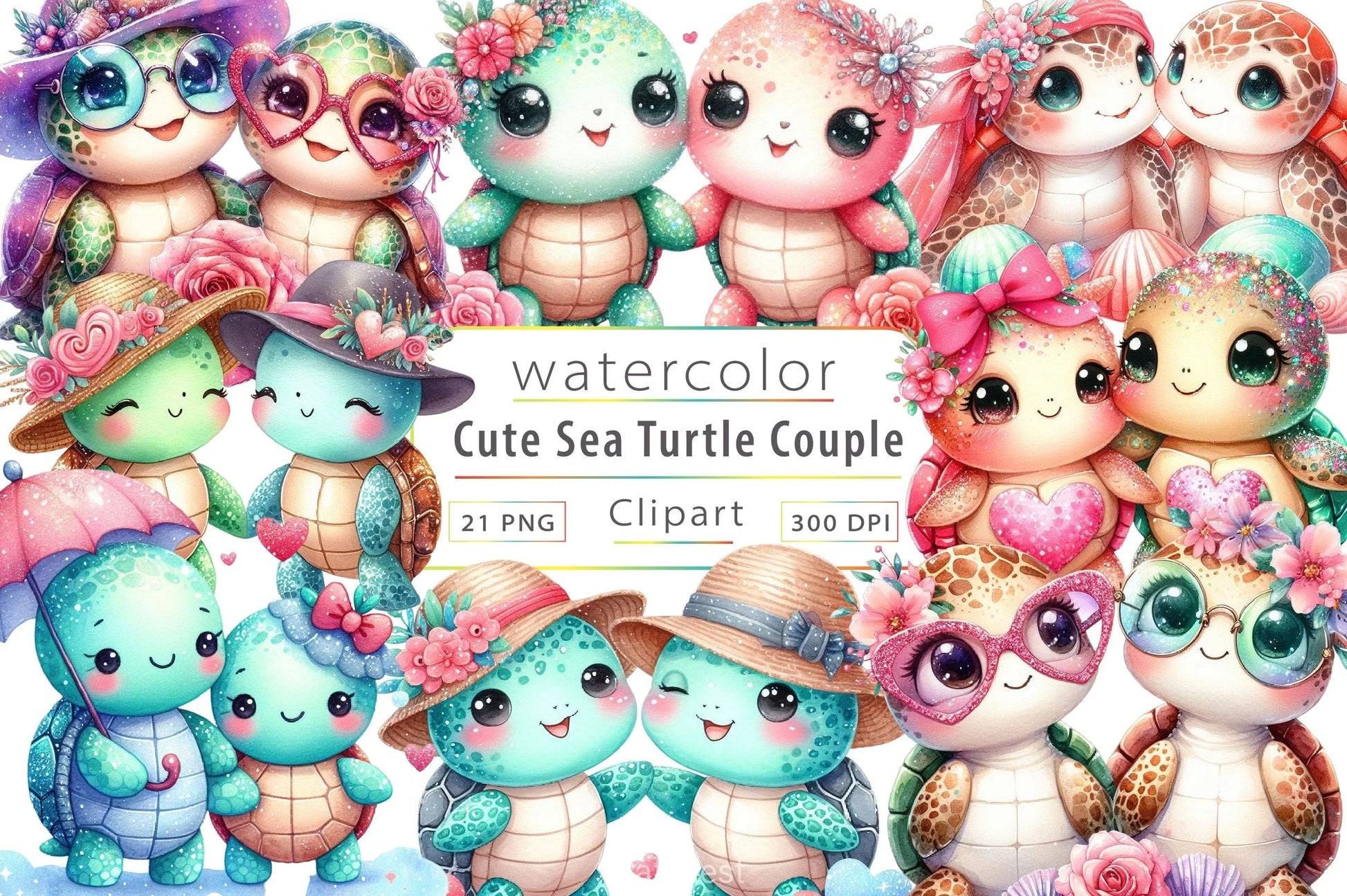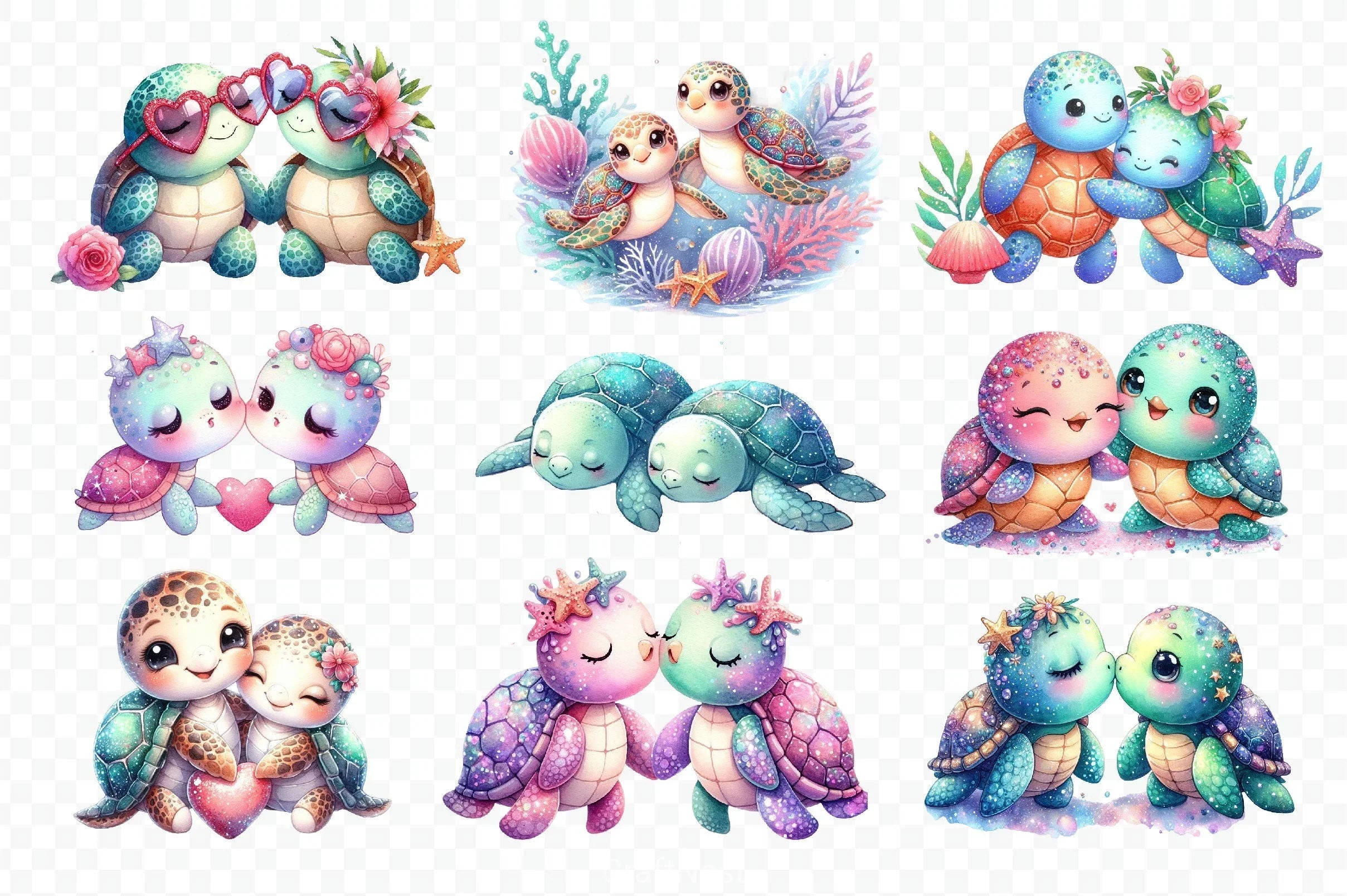 Discover the charm of our Cute Sea Turtle Couple Clipart Bundle, featuring delightful sea turtle designs perfect for ocean-themed crafts and projects.