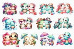 Cute Sea Turtle Couple Clipart Bundle