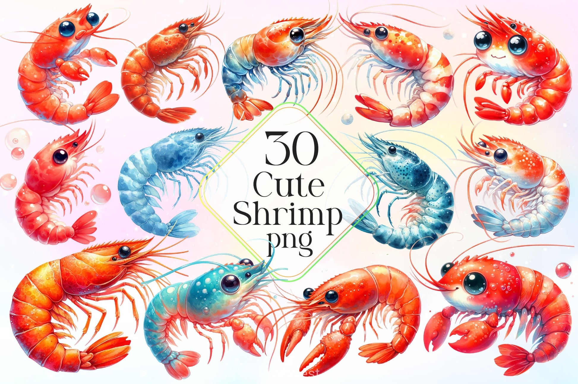 Adorable shrimp characters perfect for ocean and seafood themed projects.