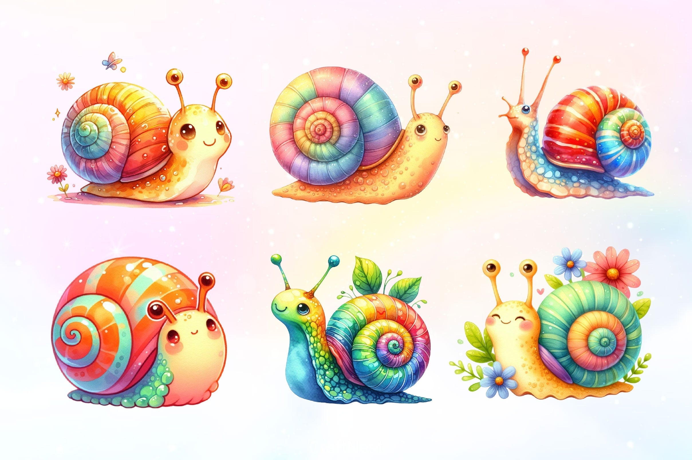 Adorable snail characters perfect for garden and nature themed projects.