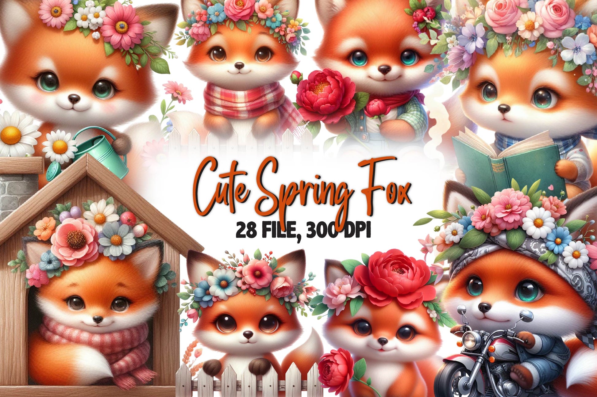 Sneak with this Cute Spring Fox Clipart Bundle, featuring adorable wildlife designs, perfect for spring animal crafts.