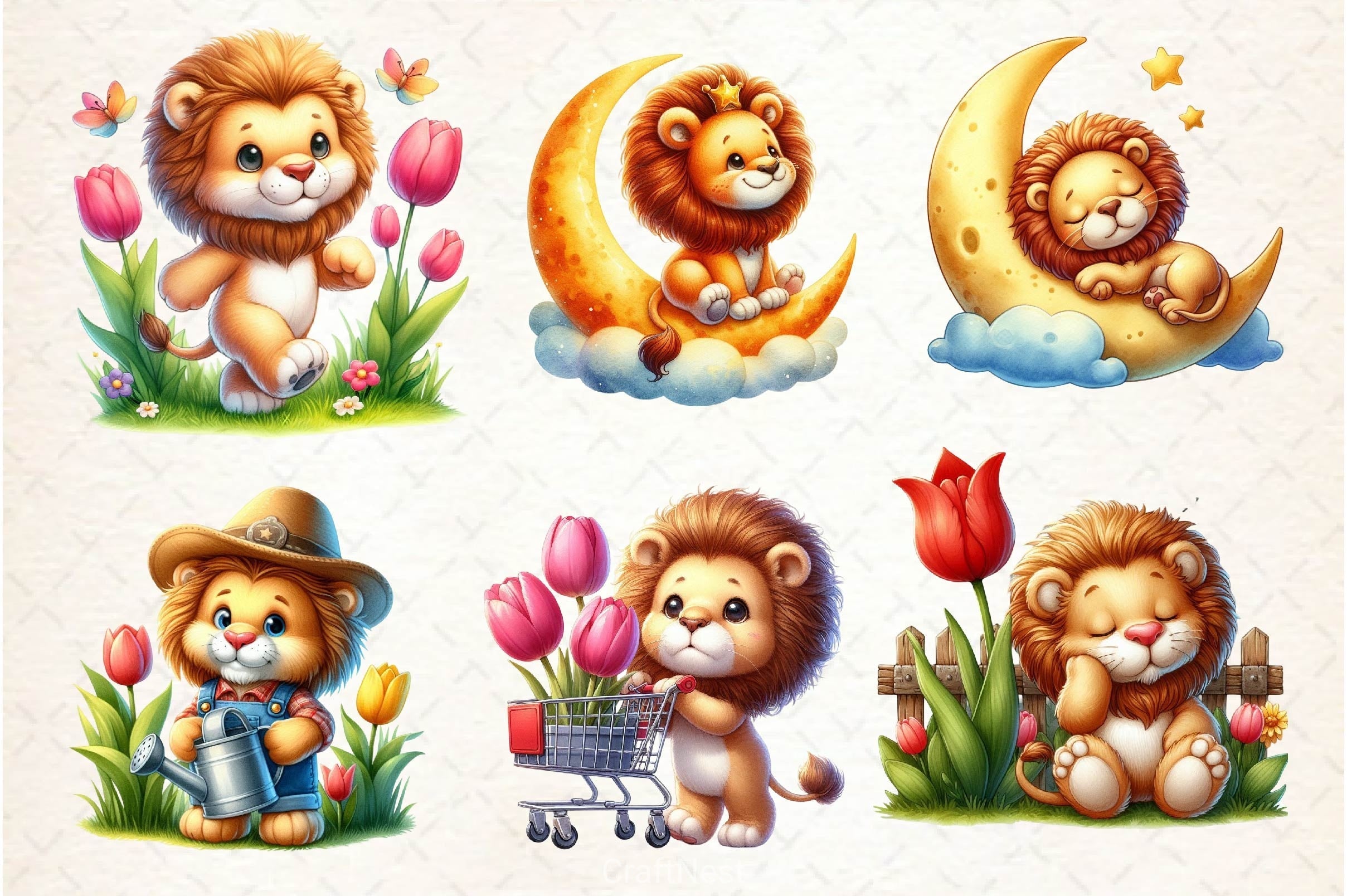 Roar with this Cute Spring Lion Clipart Bundle, featuring adorable big cat seasonal designs, perfect for safari spring crafts.