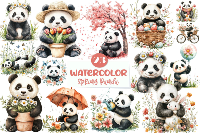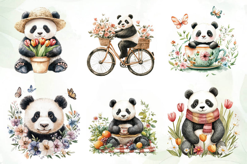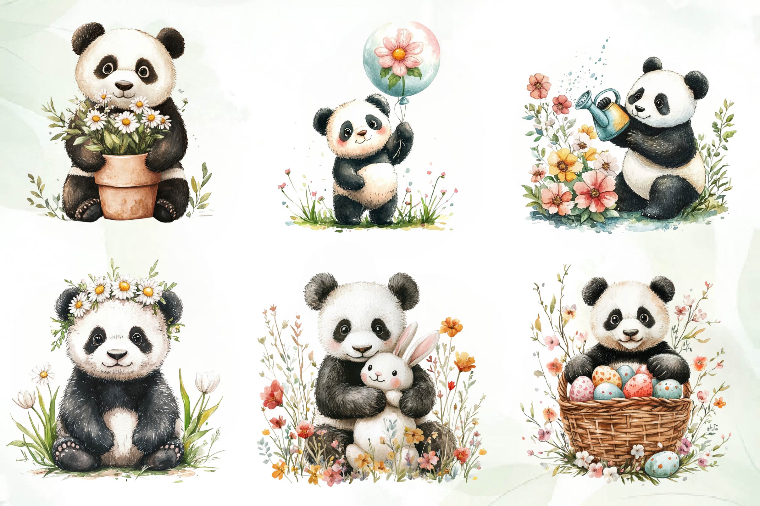 Play with this Cute Spring Panda Clipart Bundle, featuring adorable panda designs, perfect for spring animal crafts.