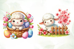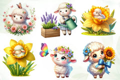 Graze with this Cute Spring Sheep Clipart Bundle, featuring fluffy spring sheep designs, ideal for farm animal crafts.