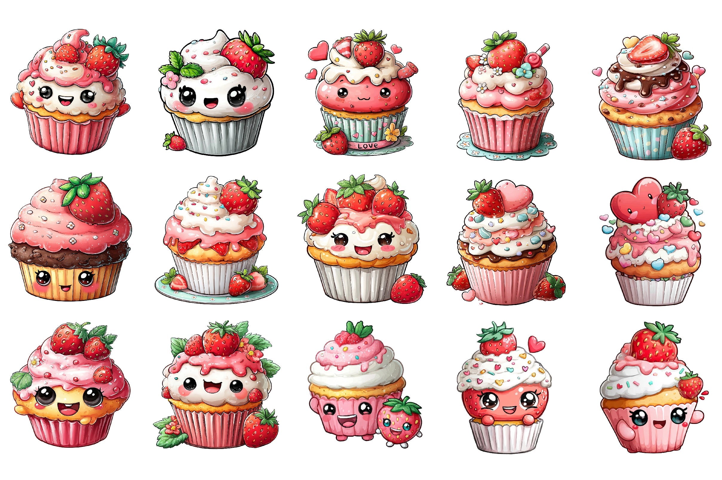 Delight in the charm of our Cute Strawberry Cupcake Clipart Bundle, perfect for adding a sweet touch to your creative projects. This adorable collection features vibrant strawberry cupcake designs, ideal for invitations, scrapbooking, and digital crafts. Elevate your artwork with these high-quality, printable cliparts, perfect for both personal and commercial use. Unleash your creativity with this irresistible bundle and make your projects stand out with a dash of sweetness.
