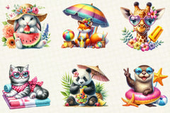 Celebrate summer with this Cute Summer Animals Clipart, featuring playful animal designs, ideal for seasonal crafts.